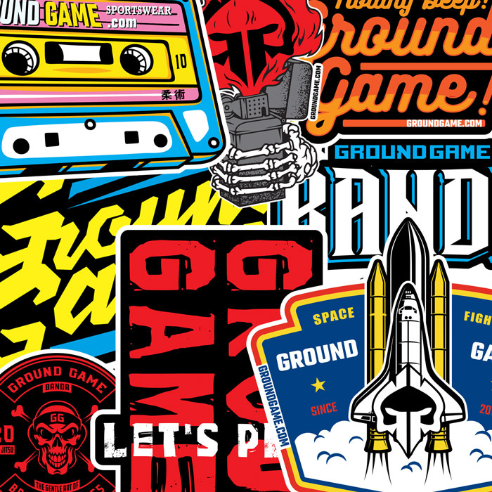 Zestaw 8 stylowych wlep Ground Game - zajawkowa sprawa dla wszystkich fanów sportów walki i naszej marki.