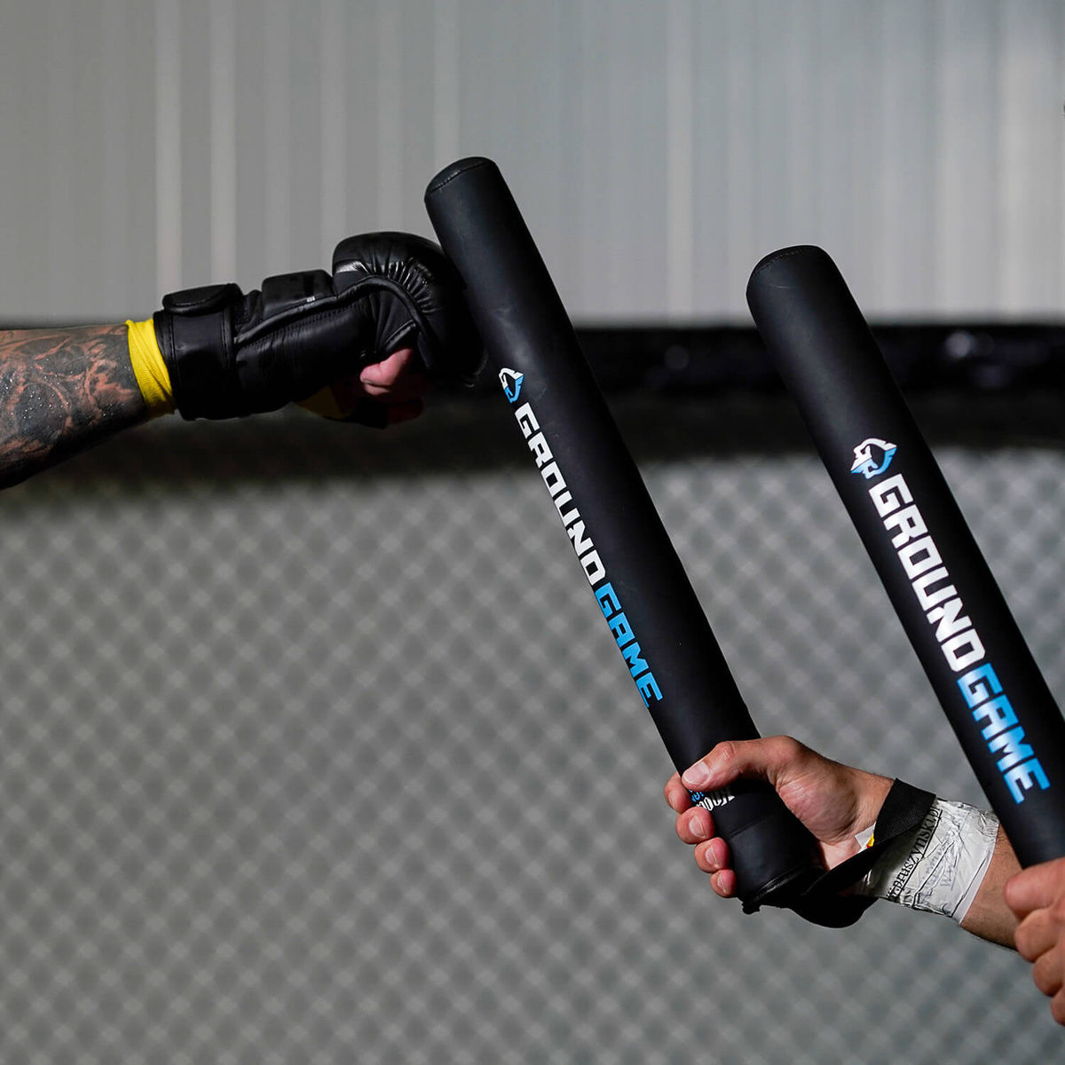 Bastoane de box pentru antrenamente ușoare pentru antrenament reflexiv și precis pentru persoanele care practică box, kickboxing și MMA. Practicarea de box cu bastoane va îmbunătăți acuratețea loviturilor, eschivărilor, blocajelor și coordonarea ochi-mână. Datorită umpluturii cu spumă Eva cu duritate medie, bastoanele sunt ușoare și sigure chiar și pentru articulațiile antrenorului ;-) Pielea sintetică folosită este rezistentă la crăpături și ușor de curățat, iar datorită mânerului din cauciuc, bastoanele sunt confortabil de ținut.Descriere: