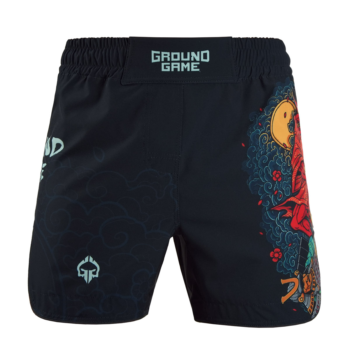 Pantaloni scurți MMA din material ușor și rezistent, care vă vor face să vă simțiți și mai confortabil în timpul antrenamentului. În comparație cu pantalonii scurți clasici MMA Ground Game, acest model este realizat dintr-un material mai moale. Materialul elastic din zona inghinală și șlițuri disctete de pe pantaloni garantează libertate totală de mișcare. Talie elastică lată și șnur pentru o așezare perfectă. Ca de fiecare dată, vă puteți baza pe grafice originale de sublimare, datorită cărora imprimeul este indelebil, iar culorile rămân strălucitoare chiar și în anii de antrenament.