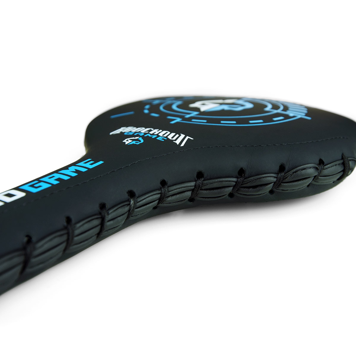 Antrenați-vă cu palmarele de box / ținte pentru a vă îmbunătăți viteza și precizia loviturilor. Ținta este acoperită cu piele naturală rezistentă la crăpături. În interior se află spumă, care este ideală pentru amortizarea forței pumnilor. Mânerul este căptușit. Curelele elastice minimizează riscul ca ținta să cadă din mână în timpul antrenamentului. În centru se află o grafică a țintei pentru a vă asigura că o nimeriți de fiecare dată.