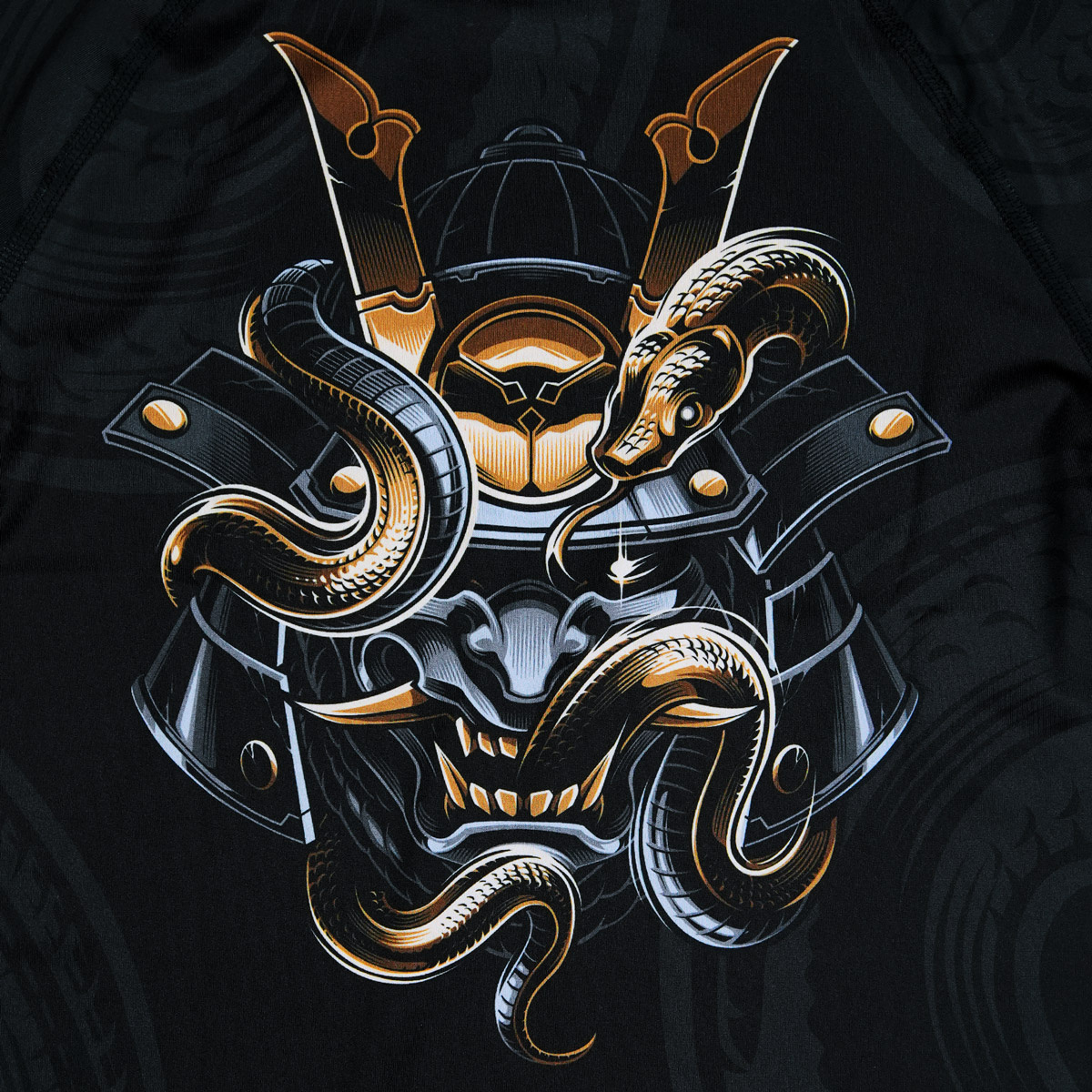 Rashguard pentru bărbați cu mâneci lungi ideal pentru antrenamentele de arte marțiale. Este confecționat dintr-o țesătură rezistentă, care nu se scămoșează și este rezistent la abraziune. Grafica a fost aplicată prin sublimare, astfel imprimeul este practic indelebil, iar culorile sunt perfect afișate. Își va păstra aspectul minunat chiar și după ani de antrenament solicitant. Rashguard este, de asemenea, potrivit ca strat termic, de ex. în timpul iernii.Descriere: