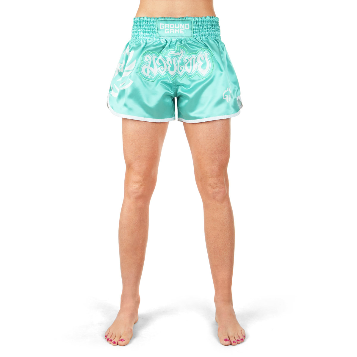 - Pantaloni scurți ușori și confortabili de Muay Thai pentru femei, în culoarea mentă.