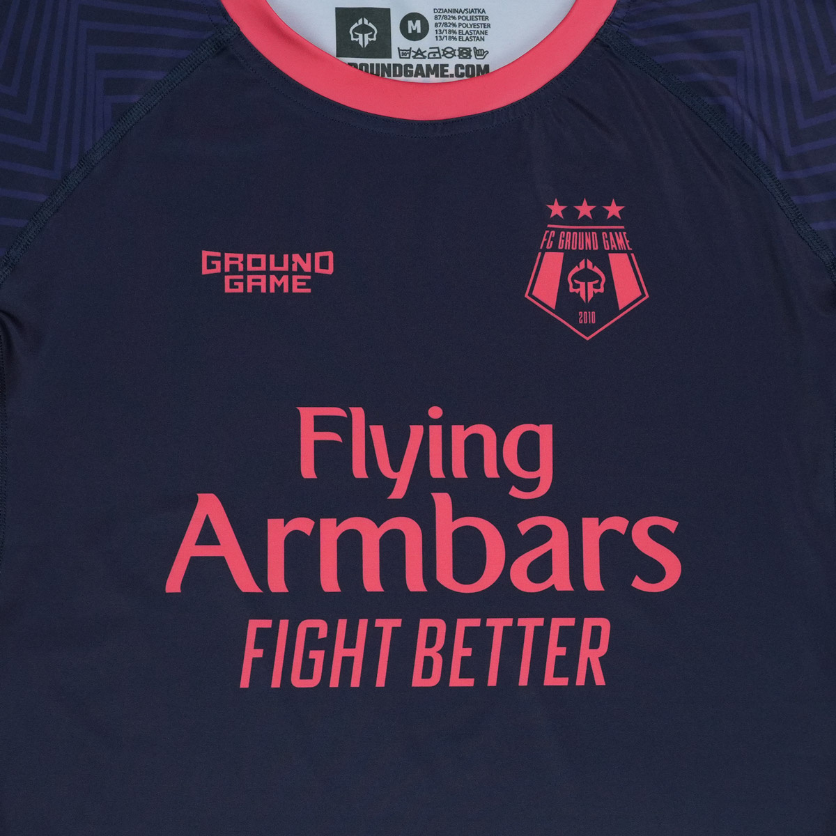 Rashguard pentru bărbați cu mânecă scurtă, inspirat de tricoul de fotbal. Grafica este aplicată prin sublimare, făcând printul extrem de durabil.Rashguard-ul este o alegere excelentă pentru antrenamentele de BJJ, MMA, dar este potrivit și pentru crossfit și alte activități fizice.