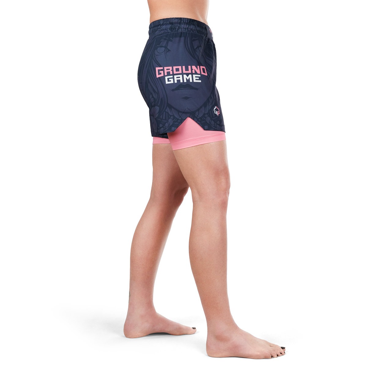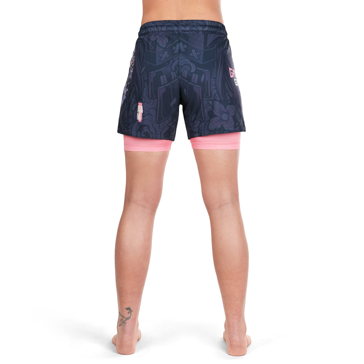 Shorts pentru femei care combină avantajele pantalonilor scurți Vale Tudo cu pantalonii scurți de antrenament largi. Materialul ușor și respirabil asigură confortul în timpul antrenamentelor și elimină eficient transpirația. Grafica este aplicată prin sublimare, ceea ce o face durabilă și menține culorile vii. Acestea sunt pantaloni scurți ideali pentru orice activitate fizică, de la sporturi de luptă la alergare, sală sau antrenamente de mobilitate.Caracteristici principale