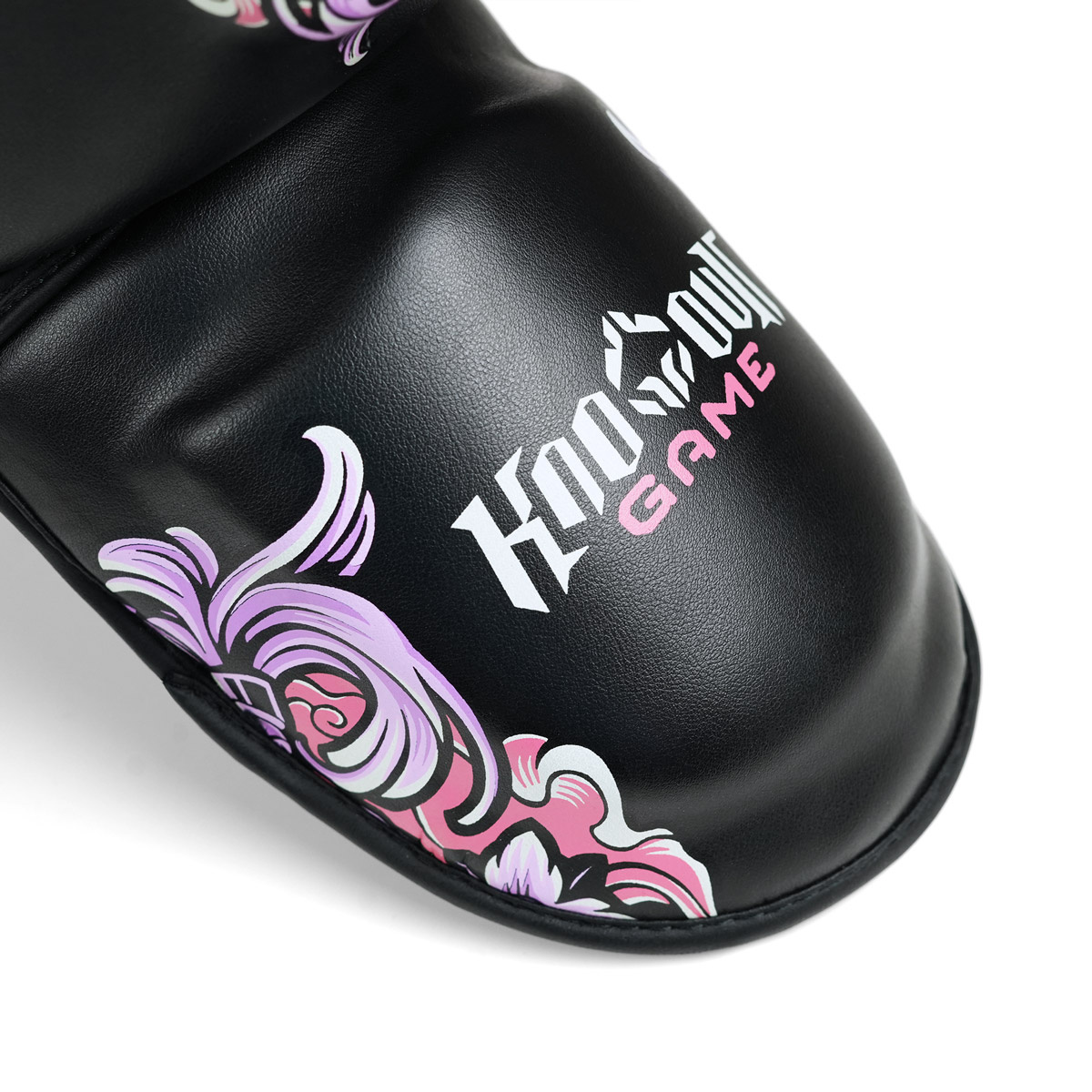 Tibierele bune sunt esențiale. Modelul Asami a fost creat special pentru femei – mai ușor, adaptat siluetei feminine și cu un design care atrage atenția în sală. Construcția profilată acoperă întreaga tibie și partea superioară a labei piciorului, iar spuma groasă absoarbe bine loviturile. Benzile cu scai și cureaua de stabilizare mențin protecția pe poziție. Panoul flexibil de pe laba piciorului permite lovituri libere fără a restricționa mișcarea. Realizate din piele sintetică rezistentă la crăpături și uzură. Cu aceste tibiere poți lucra fără griji runde după runde de low kick-uri.