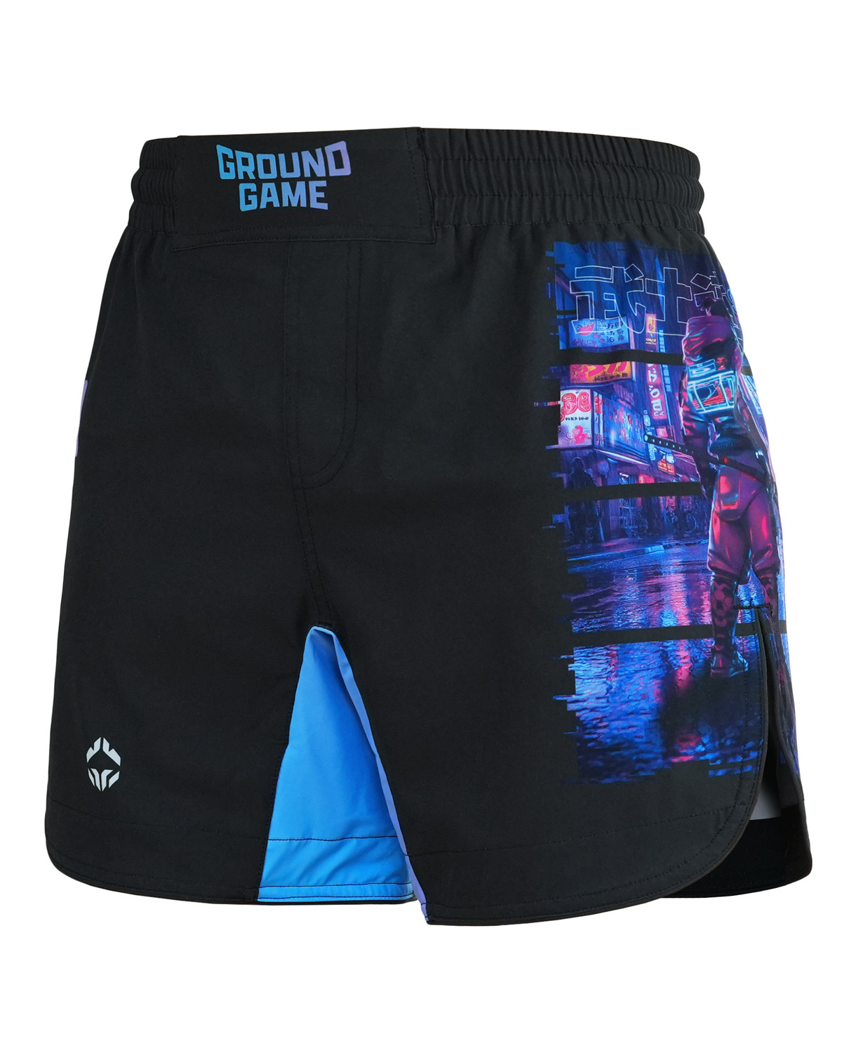 Shorturi MMA dintr-un material ușor și durabil, care îți oferă un confort sporit în timpul antrenamentului. Comparativ cu shorturile MMA clasice Ground Game, acest model folosește un material mai subțire și mult mai ușor. Panoul elastic din zona inghinală și micile deschideri la picioare asigură libertatea completă de mișcare. Talie elastică și șnur pentru o potrivire perfectă.Grafica originală a fost aplicată prin sublimare, astfel încât imprimarea este rezistentă la uzură, iar culorile își păstrează aspectul vibrant de-a lungul anilor de antrenament.