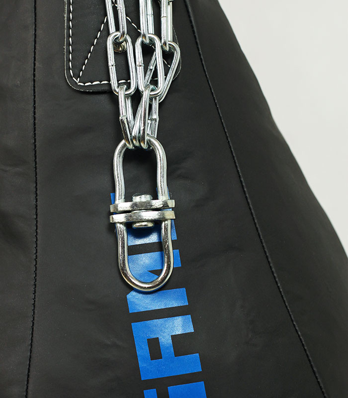 - Include un lanț metalic rezistent cu 4 brațe și pivot, care previne răsucirea lanțurilor în timpul loviturilor